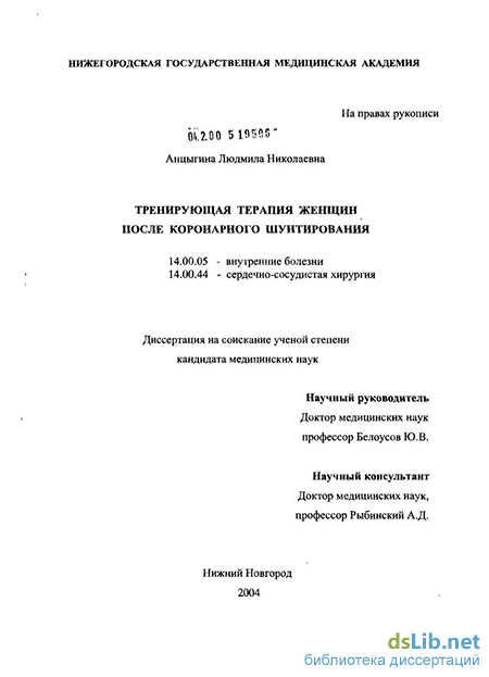 Научная новизна Изучена эффективность тренирующей терапии женщин на разных этапах после коронарного шунтирования с использованием комплекса клинико-инструментальных методов исследования.