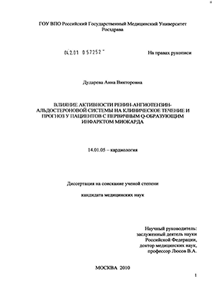 На протяжении последних десятилетий ишемическая болезнь сердца остается наиболее частой причиной смертности и инвалидизации трудоспособного населения большинства стран мира. Применение новых методов лечения, таких как тромболитическая терапия, чрескожные коронарные вмешательства, назначение -блокаторов, ингибиторов АПФ, блокаторов ангиотензиновых рецепторов,статинов, новых дезагрегантов и антикоагулянтов, позволило снизить внутрибольничную летальность. Так, по данным за 2007 г. уровень госпитальной летальности при инфаркте миокарда в Москве составлял 12,8%. Наиболее важными неблагоприятными прогностическими факторами у больных в остром периоде ИМ является наличие сердечной недостаточности и нарушения ритма сердца. Доказано, что активация ренин-ангиотензин-альдостероновой системы в первые часы инфаркта миокарда приводит к развитию сердечной недостаточности, ускорению процессов ремоделирования левого желудочка. На ранних стадиях ремоделирование сердца является компенсаторной реакцией организма на снижение сердечного выброса и играет важную роль в перестройке миокарда, стимулируя гипертрофию кардиомиоцитов и замещение зоны инфаркта рубцовой тканью. Однако степень нейрогуморальной активации ренин-ангиотензин-альдостероновой системы и ее роль в процессах ремоделирования сердца, а также влияния современных методов лечения на содержание отдельных нейрогормонов остаются недостаточно изученными.