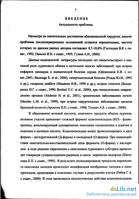 Поэтому поиск новых методов ингибирования чрезмерной активности ксантиноксидазы при острых хирургических заболеваниях органов брюш-