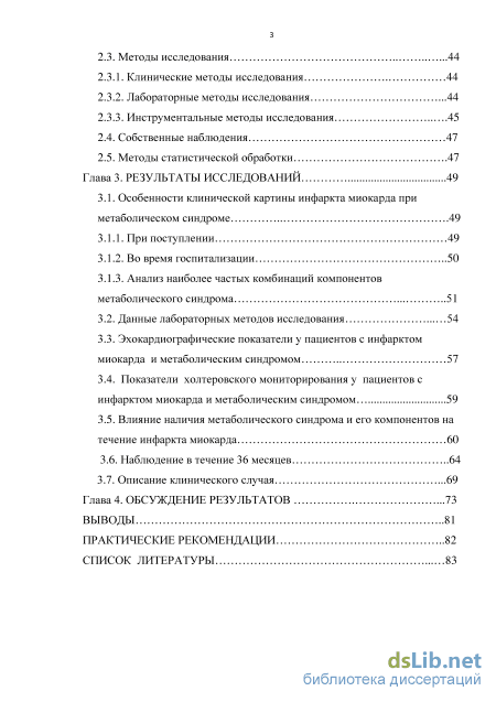 3.1. Особенности клинической картины инфаркта миокарда при метаболическом синдроме 49