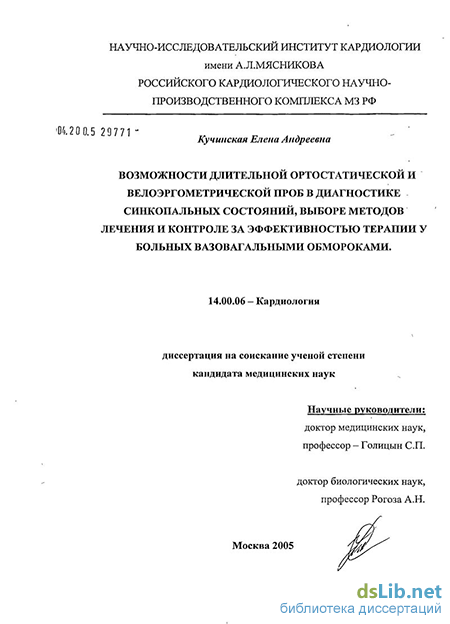 Изучение возможностей длительной пассивной ортостатической пробы и максимального нагрузочного теста на велоэргометре, с резкой остановкой на высоте физической нагрузки, в дифференциальной диагностике синкопальных состояний, выборе методов терапии и контроле за эффективностью лечения у больных вазовагальными обмороками.
