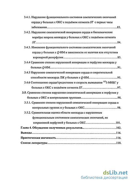 Показано, что размеры области повреждённых симпатических окончаний сердца при нестабильной стенокардии и инфаркте миокарда превышает размеры зоны нарушенной перфузии, выявленные при однофогонной эмиссионной компьютерной томографии миокарда с "Тс-МИБИ. Большие размеры области миокарда с нарушенной симпатической иннервацией, но сохранённой перфузией в процентном выражении выявлены у больных с