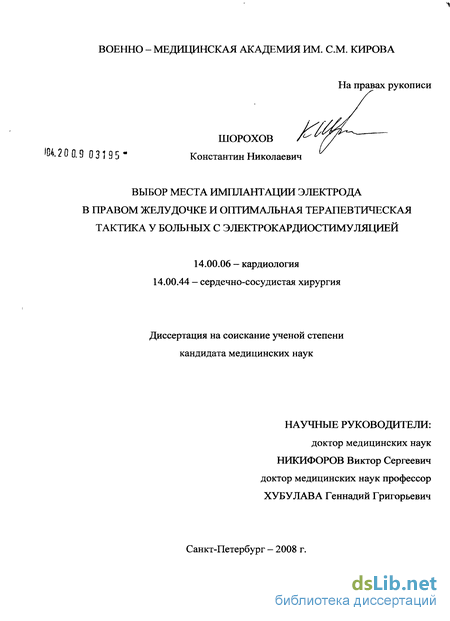 Таким образом, проблемы выбора места имплантации электрода в ПЖ, медикаментозной и немедикаментозной терапии больных с длительной ЭКС являются актуальными, что и послужило основой для настоящей работы.