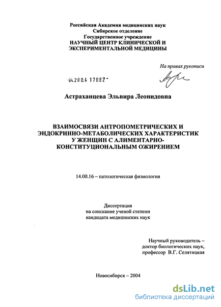 Актуальность темы. ВОЗ рассматривает ожирение как эпидемию, поскольку в мире, особенно в развитых странах, в последние десятилетия прогрессивно увеличивается число лиц с этим заболеванием. Их частота в 1998 г. составила 250 млн. человек (Millar, Stefens, 1987; Grenney, Gorstein, 1990; WHO, 1998), а по оценкам специалистов ВОЗ к 2025 г. число больных с ожирением составит более 300 млн. Значимость проблемы ожирения определяется угрозой ранней инвалидизации и снижением общей продолжительности жизни вследствие развития сопутствующих заболеваний, таких как сахарный диабет, сердечно-сосудистые заболевания и др. (Алмазов и др., 1999; Аметов и др., 2001; Carmichael, 1999). В Сибири доля лиц с ожирением составляет 11,8% среди мужчин и 39,6% среди женщин; распространенность избыточной массы тела равна 54,4% и 75,5% соответственно (Кылбанова и др., 2000).