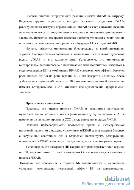 Переход с монотерапии бисопрололом на его комбинацию с амлодипином устраняет вызванное бета-блокатором повышение аугментации аортального систолического давления, эффективно снижает центральное и периферическое систолическое АД, уменьшает артериальную ригидность. Лечение комбинацией не влияет на иЛЖАВ за счет сбалансированного снижения желудочкового эластанса бета-блокатором и артериального эластанса - амлодипином. Внедрение в практику. Результаты работы используются в учебном процессе на кафедрах пропедевтики внутренних болезней, факультетской терапии Медицинского института РУДН, кафедре внутренних болезней, кардиологии и клинической фармакологии ФПКМР Медицинского института РУДН, в практической работе кардиологических и терапевтических отделений, отделения функциональной диагностики ГБУЗ ГКБ №64 ДЗМ.