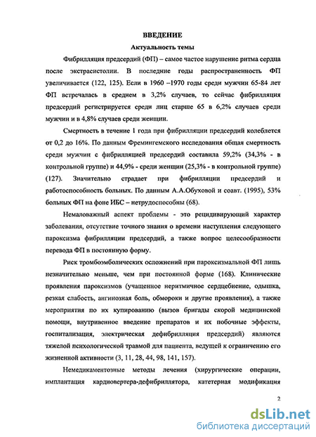 Фибрилляция предсердий (ФП)– самое частое нарушение ритма сердца после экстрасистолии. В последние годы распространенность ФП увеличивается (А.В. Недоступ, 1998, М.С. Кушаковский, 2000). Если в 1960 –1970 годы среди мужчин 65-84 лет ФП встречалась в среднем в 3.2% случаев, то сейчас это нарушение ритма регистрируется среди лиц старше 65 в 6,2% случаев среди мужчин и в 4,8% случаев среди женщин.