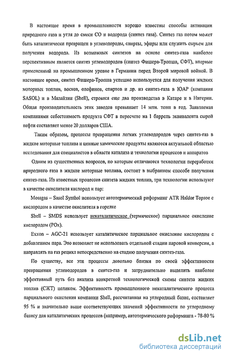 Краткое описание процессов паровой конверсии метана и синтеза Фишера-Тропша ..„ 12