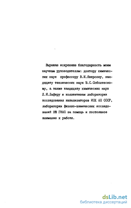 Несмотря на безусловный прогресс наших знаний о катализе, общие положения теорий гетерогенного катализа не приводят зачастую к практической реализации проведения конкретных реакций и к подбору новых катализаторов или усовершенствованию существующих. Такой разрыв между теорией и требованиями практики связан был» в частности, с отсутствием экспериментальных работ по установлению природы активных частиц, механизма адсорбции, состояния поверхности и элементарных актов в гетерогенно-каталитических реакциях. Этот вывод дал мощный толчок развитию за последние 15-20 лет физических экспериментальных методов исследования природы и структуры адсорбированных состояний, взаимодействия адсорбат-адсорбент, влияния реакционной среды на поверхность катализаторов и механизмов элементарных актов в конкретных гетерогенно-каталитических процессах.