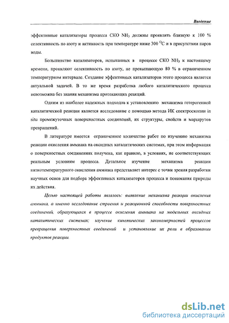 Таким образом, полученные данные о механизме реакции позволяют сделать вывод, что активность и селективность оксидных катализаторов в процессе окисления аммиака зависит как от кислотных свойств поверхности, так и от соотношения поверхностных форм кислорода, активных в реакции. Эта особенность механизма окисления аммиака на оксидных катализаторах объясняет отличия в их каталитических свойствах, а также открывает перспективные подходы к целенаправленному синтезу эффективных катализаторов процесса низкотемпературного окисления аммиака до азота.