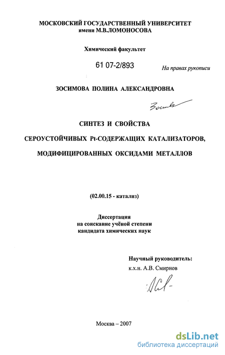 Таким образом, цель настоящей диссертационной работы заключалась в разработке многокомпонентных Pt-содержащих катализаторов, имеющих повышенную устойчивость к отравлению соединениями серы; развитии новых подходов к синтезу таких систем и установлении взаимосвязи между их физико-химическими свойствами, каталитической активностью и стабильностью работы.