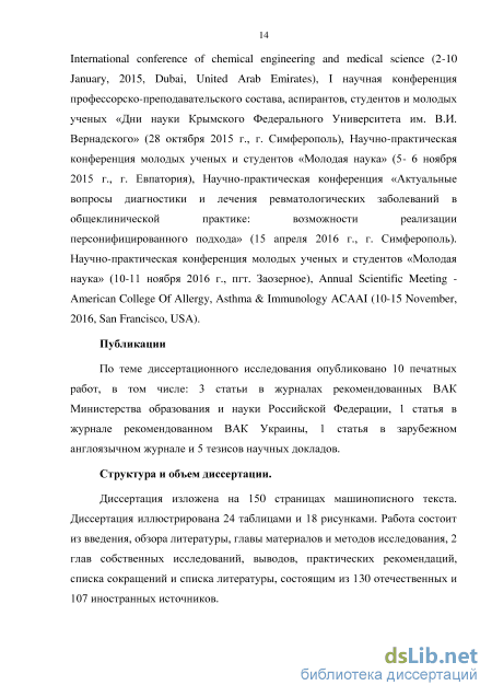 Крымского Федерального Университета им. В.И. Вернадского» (28 октября 2015 г., г. Симферополь), Научно-практическая конференция молодых ученых и студентов «Молодая наука» (5- 6 ноября 2015 г., г. Евпатория), Научно-практическая конференция «Актуальные вопросы диагностики и лечения ревматологических заболеваний в общеклинической практике: возможности реализации персонифицированного подхода» (15 апреля 2016 г., г. Симферополь).Научно-практическая конференция молодых ученых и студентов «Молодая наука» (10-11 ноября 2016 г., пгт.Заозерное), Annual Scientific Meeting - American College Of Allergy, Asthma & Immunology ACAAI (10-15 November, 2016, San Francisco, USA).