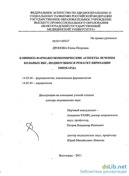 Похожие диссертации на Клинико-фармоэкономические аспекты лечения больных ИБС, подвергшихся реваскуляризации миокарда