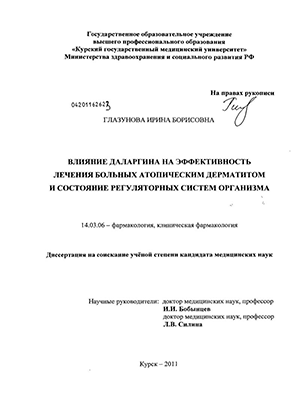 Включение даларгина в стандартную терапию атопического дерматита повышает эффективность лечения, уменьшая клинические проявления заболевания, сроки пребывания н стационаре и увеличивая продолжительность межрецидивного периода.
