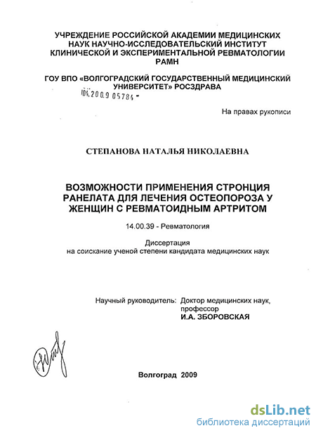 Таким образом, изучение эффективности применения стронция ранелата для лечения остеопороза представляется весьма актуальной и перспективной задачей.