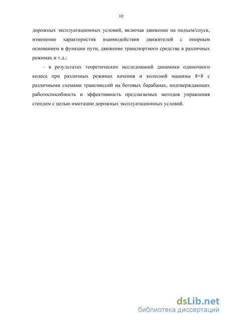 разработаны новые методы проведения экспериментальных исследований колесной техники на стендах с беговыми барабанами, позволяющие имитировать реальные дорожные эксплуатационные условия;