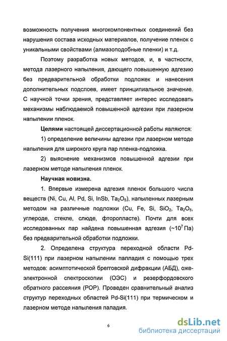 Поэтому разработка новых методов, и, в частности, метода лазерного напыления, дающего повышенную адгезию без предварительной обработки подложек и нанесения дополнительных подслоев, имеет принципиальное значение. С научной точки зрения, представляет интерес исследовать механизмы наблюдаемой повышенной адгезии при лазерном напылении пленок.