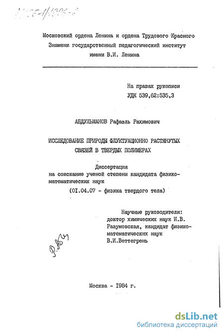 тории физики прочности ЛЖГИ им. А.Ф. Иоффе АН СССР в период с 1981 по 1984- г.