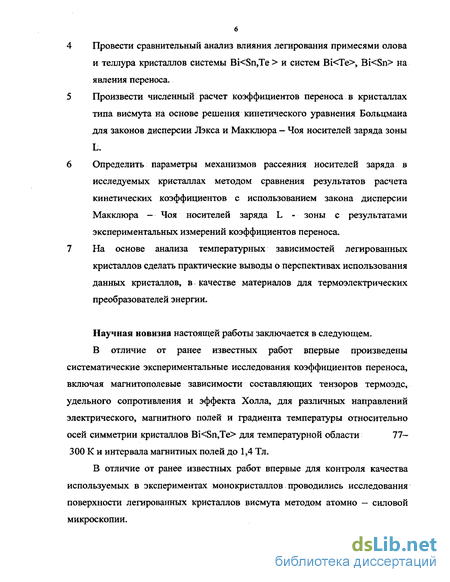 В отличие от известных работ, посвященных изучению явлений переноса в кристаллах типа висмута, в данной работе были получены следующие новые научные результаты: