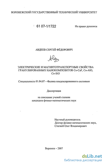 Тема диссертации соответствует «Перечню приоритетных направлений фундаментальных исследований», утвержденных Президиумом РАН (раздел 1.2- «Физика конденсированного состояния вещества»). Диссертационная работа является частью комплексных исследований, проводимых на кафедре физики твердого тела Воронежского государственного технического университета по грантам РФФИ: № 06-02-81035-Бел_а «Нелинейные явления в композитных и мультислойных магнитных наноструктурах при воздействии внешних полей», № 06-08-01045-а «Аномальные магнитотранспортные эффекты в наногранулированных композиционных материалах металл-диэлектрик», № 05-02-17012-а «Магнитоэлектрический эффект и магнитосопротивление в гранулированных нанокомпозитах и многослойных наноструктурах ферромагнетик - сегнетоэлектрик», № 03-02-96486-р2003цчр_а «Магнитный импеданс и магнитосопротивление ферромагнитных гранулированных нанокомпозитов и многослойных наноструктур».