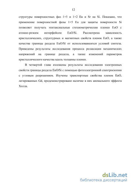 Целью работы являлись разработка методик синтеза монокристаллических пленок ферромагнитного полупроводника ЕиО, напрямую эпитаксиально сопряженных с кремнием, методом молекулярно-лучевой эпитаксии, а также характеризация кристаллического качества, электронной структуры границы раздела, структурных, магнитных и транспортных свойств полученных гетероструктур.