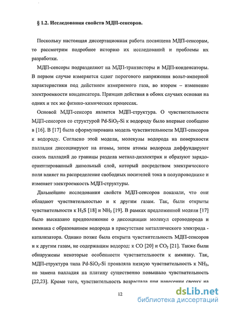 К настоящему времени ряд принципиальных недостатков МДП-сенсоров уже удалось устранить за счет модификации технологии их изготовления и подбора оптимальных режимов термообработки. В общих чертах была сформулирована модель механизма чувствительности МДП-сенсоров. В результате этого было показано, что МДП-сенсоры могут стать, в принципе, вполне конкурентоспособными по сравнению с наиболее распространенными на сегодняшний день другими типами сенсоров.