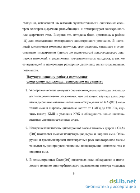 об энергетическом спектре тяжелых двумерных дырок и его и спин-орбитальном расщеплении в GaAs квантовых ямах, а также о законе дисперсии и затухании одномерных, двумерных и краевых магнитоплазменных возбуждений в ограниченных двумерных электронных системах. Эти результаты важны не только для более глубокого понимания фундаментальных вопросов физики низкоразмерных структур, но и с точки зрения практических применений при создании спинового транзистора и других элементов нано-электроники, а также при разработке дешевых, миниатюрных и эффективных терагерцовых генераторов, детекторов и спектрометров.