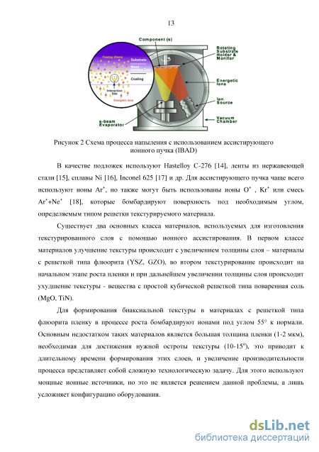 В качестве подложек используют Hastelloy C-276 [14], ленты из нержавеющей стали [15], сплавы Ni [16], Inconel 625 [17] и др. Для ассистирующего пучка чаще всего используют ионы Ar+, но также могут быть использованы ионы 0+ , Кг+ или смесь Ar++Ne+ [18], которые бомбардируют поверхность под необходимым углом, определяемым типом решетки текстурируемого материала.