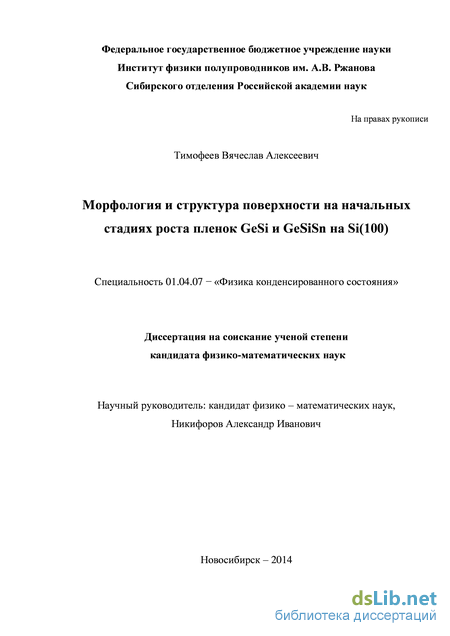 Цель диссертационной работы состояла в установлении закономерностей начальных стадий роста пленок GeSi и GeSiSn на поверхности Si(100).