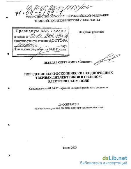 4» исследовательских работ НИИ высоких напряжений при Томском политехни- ческом университете (НИИ ВН при ТПУ, г.Томск) и НИИ кабельной промышленности (НИКИ, г.Томск), в рамках Программы Минобразования РФ "Фундаментальные исследования высшей школы в области естественных и гуманитарных наук. Университеты России" и грантов программы "NATO Fellowship Programme".