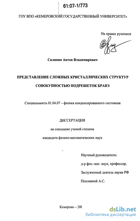 Апробация работы. Основные результаты работы опубликованы в 2 статьях в ведущих рецензируемых научных журналах из списка ВАК и 4 статьях в сборниках докладов международных научных конференций, докладывались и обсуждались на следующих конференциях: Международной конференции студентов, аспирантов и молодых ученых по фундаментальным наукам «Ломоносов-2003» (Москва, 2003), Всероссийских научных конференциях студентов-физиков и молодых ученых (Красноярск, 2003; Москва, 2004; Екатеринбург, 2005; Новосибирск, 2006), 31-й апрельской научной конференции студентов и молодых ученых КемГУ (Кемерово, 2004), конференции «Химия и химическая технология на рубеже тысячелетий» (Томск, 2004), Международной конференции «Физико-химические процессы в неорганических материалах» (Кемерово, 2004), Итоговой конференции Всероссийского конкурса на лучшие научные работы студентов по естественным, техническим наукам (проекты в области высоких технологий) и инновационным научно-образовательным проектам (Москва,