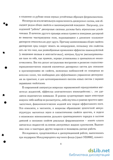 Несмотря на исключительную вариативность дисперсных систем, они обладают рядом общих свойств и закономерностей поведения. Например, для надежной "работы" дисперсные системы должны быть агрегативно устойчивыми. В качестве другого примера можно привести поведение дисперсий во внешнем температурном поле, выражающееся в движении компонент дисперсии относительно друг друга. Причину возникновения общих свойств дисперсных сред следует искать на микроуровие, поскольку эти свойства есть не что иное, как разнообразные проявления эффектов взаимодействий (с внешними полями и межчастичных), которые, будучи рассматриваемыми сами по себе, как правило, хорошо установлены и сравнительно немногочисленны. Все это делает актуальным построение и развитие статистико-термодинамических моделей магнитных дисперсных систем для описания и прогнозирования их свойств, выяснения особенностей их поведения во внешних полях, что необходимо для эффективного управления дисперсиями на практике, и для целенаправленного синтеза новых систем с заранее заданными свойствами.