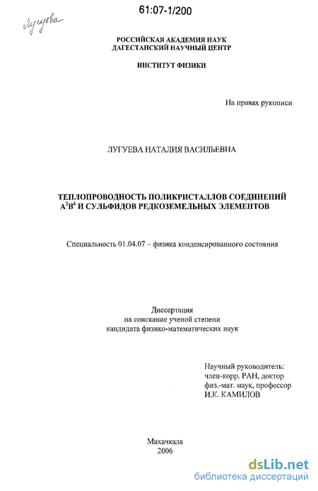 Ëóãóåâ Ñ.Ì., Ëóãóåâà Í.Â., Ñîêîëîâ Â.Â. Èññëåäîâàíèå âëèÿíèÿ äèñïåðñíîñòè íà òåïëîïðîâîäíîñòü ñóëüôèäà ëàíòàíà È Òåðìîýëåêòðèêè è èõ ïðèìåíåíèÿ: Äîêëàäû V Ìåæãîñóäàðñòâåííîãî ñåìèíàðà - Ñ.-Ïá.: ÔÒÈ èì. ÈîôôåÄ 999. - Ñ. 141-144.
