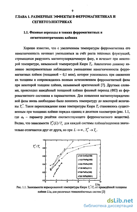 1.1. Фазовые переходы в тонких ферромагнитных и сегнетоэлектрических плёнках 9