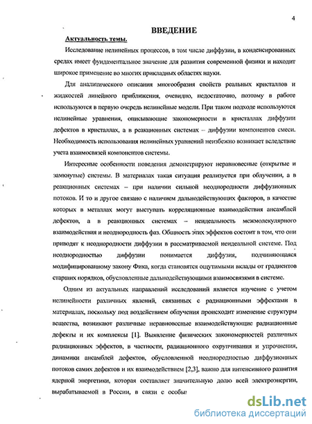 Исследование нелинейных процессов, в том числе диффузии, в конденсированных средах имеет фундаментальное значение для развития современной физики и находит широкое применение во многих прикладных областях науки.