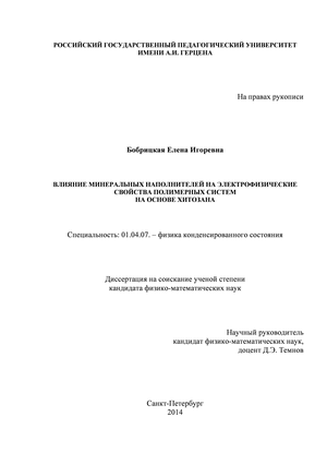 Связь темы с планом научных работ. Диссертационная работа являлась частью научных исследований лаборатории физики диэлектриков НИИ физики РГПУ им. А.И. Герцена и выполнялась при поддержке грантов ПСР 2.4.1 «Исследование электрофизических явлений в композитных полимерных материалах с наноразмерными включениями наполнителя на базе НОЦ факультета физики» и ГЗП 46/12 «Исследование электретного состояния в био-разлагаемых и биосовместимых полимерных материалах»