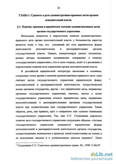 Проблема административно-правовых актов органов исполнительной власти получила определенное внимание со стороны отечественных юристов советского периода. Так, различные аспекты указанного вопроса исследовались такими правоведами как В.М. Безденежных, Р.Ф. Васильев, М.М. Волков, И. И. Евтихиев, Ю.М. Козлов, А.П. Коренев, Г.И. Петров, Л.М. Розин, С.С. Студеникин, Ю.А.Тихомиров, В.В. Черников и др. Тем не менее, можно констатировать, что к сожалению, развитие теоретических основ в данной части науки административного права несколько отстает от тех изменений, которые произошли за последние годы в практике издания и применения правовых актов управления. Последние детальные разработки в этой области относятся к началу 1980-х годов. Они, на сегодняшний день не могут дать