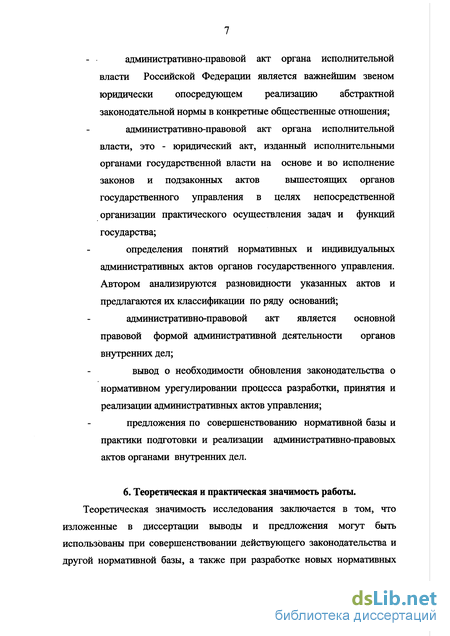 Практическая значимость диссертации состоит в том, что внедрение разработанных в процессе работы рекомендаций в деятельность по подготовке и реализации административных актов, позволит правотворческим и правоприменительным органам успешнее выполнять свои задачи. Основные положения диссертации могут быть использованы для углубленного изучения соответствующих курсов административного права и административной деятельности органов внутренних дел.