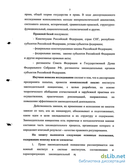 7 права, общей теории государства и права. В ходе диссертационного исследования использовались методы материалистической диалектики, системного анализа, исторический, сравнительно-правовой, структурно-функциональный, социологический, статистический и другие. Правовой базой послужили: