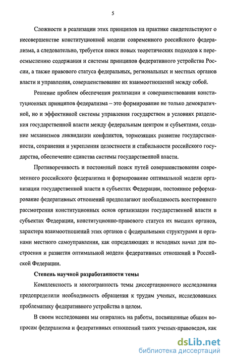 Однако, несмотря на достаточное количество работ по проблемам федерализма и федеративного устройства России, вопросы экстраполяции конституционных принципов российского федеративного устройства на уровень субъектов Федерации, конституционно-правовых форм организации государственной власти на региональном уровне в целом, проблем обеспечения единства системы государственной власти во взаимоотношениях органов власти субъектов Федерации и органов местного самоуправления не получили еще пока обстоятельного и полного освещения в научной литературе.