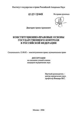 - Государственный контроль как конституционная категория: теоретико-правовые основы исследования