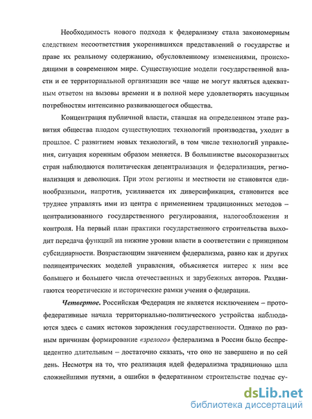 Концентрация публичной власти, ставшая на определенном этапе развития общества плодом существующих технологий производства, уходит в прошлое. С развитием новых технологий, в том числе технологий управления, ситуация коренным образом меняется. В большинстве высокоразвитых стран наблюдаются политическая децентрализация и федерализация, регионализация и деволюция. При этом регионы и местности не становятся единообразными, напротив, усиливается их диверсификация, становится все труднее управлять ими из центра с применением традиционных методов -централизованного государственного регулирования, налогообложения и контроля. На первый план практики государственного строительства выходит передача функций на нижние уровни власти в соответствии с принципом субсидиарности. Возрастающим значением федерализма, равно как и других полицентрических моделей управления, объясняется интерес к ним все большего и большего числа отечественных и зарубежных авторов. Раздвигаются теоретические и исторические рамки учения о федерации.