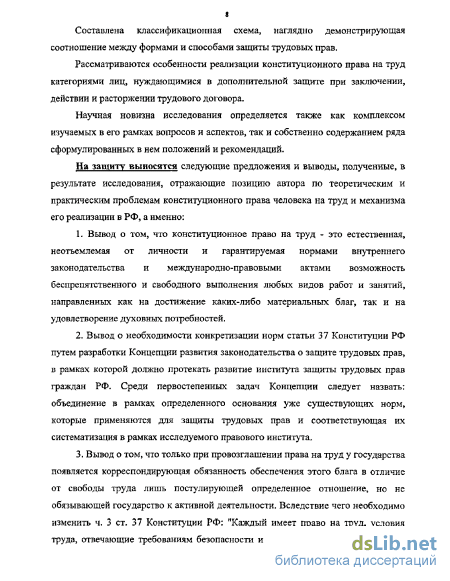 Вышеназванные обстоятельства обусловливают своевременность и оправданность обращения диссертанта к исследованию вопросов конституционного права на труд и механизма его реализации в РФ.