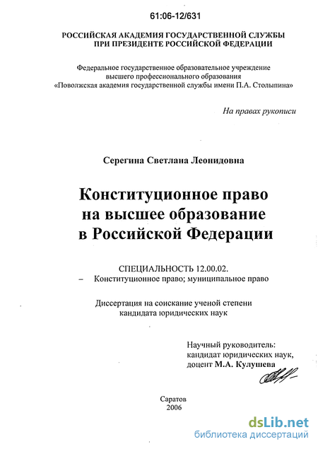 конституционного права на высшее образование;