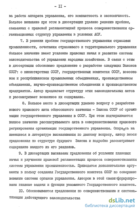 10. Обосновываются предложения по совершенствованию и система тизации действующего законодательства по управлению народным хозяй - 12 ством, и в том числе промышленностью. При этом вносятся предложения по дополнению схемы Свода законов СССР и его дальнейшему совершенствованию. В диссертации подчеркивается важная роль в современных условиях локального нормотворчества и намечаются пути его совершенствования.