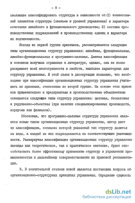 2. Дана развернутая классификация организационных структур управления. При всем разнообразии структур управления промышленностью автор приходит к выводу о том, что имеются устойчивые признаки, по - 9 зволяющие классифицировать структуры в зависимости от:1) взаимосвязей элементов структуры (звеньев и уровней управления) и характера сочетания линейного и функционального руководства; 2) состава производственных подразделении и производственных единиц и характера их подчиненности.