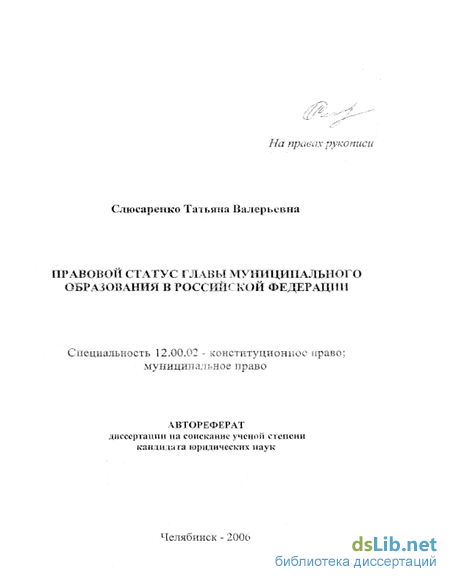 Кроме этого, на формирование положений и выводов данной диссертации оказали воздействие труды авторов, занимавшихся изучением общих вопросов организации местного самоуправления в Российской Федерации и внесших определенный вклад в разработку правовых основ статуса главы муниципального обра зования. В их числе можно отмстить работы И.В. Бабичева. Г.В. Барабашева, О.В- Берга, Е- Берковича Н.С. Бондаря, А.Н. Бурова, В.И. Васильева, И.В. Выдри-на, JL Гильчснко, Н.А. Емельянова В,Г, Игнатова, А.Н- Кокотова, А.Н. Костюкова, В.В. Маклакова, А.Т. Тсртышного, Ю.А. Тихомирова, М.З. Фсйгина и многих других.