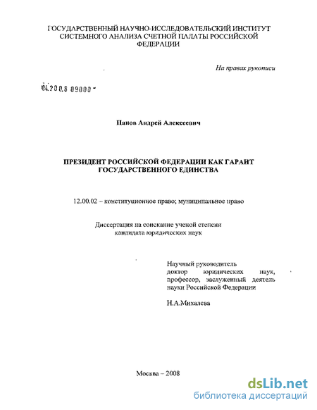 4 Левакин И.В. Государственное единство России: теоретико-правовое исследование // Дпсс. ... докт. юрид.