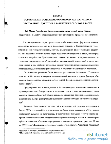 Глава I. Современная социально-политическая ситуация в Республике Дагестан и развитие ее органов власти .