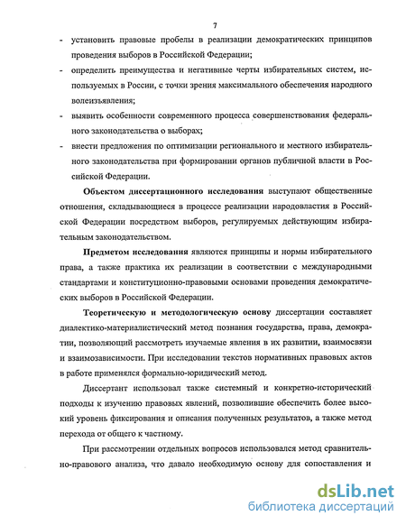 Предметом исследования являются принципы и нормы избирательного права, а также практика их реализации в соответствии с международными стандартами и конституционно-правовыми основами проведения демократических выборов в Российской Федерации.