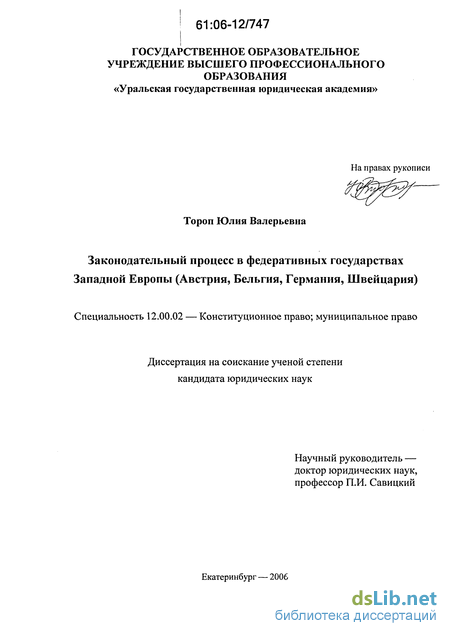 Глава 1. Общая характеристика законодательного процесса в федерациях Западной Европы 11